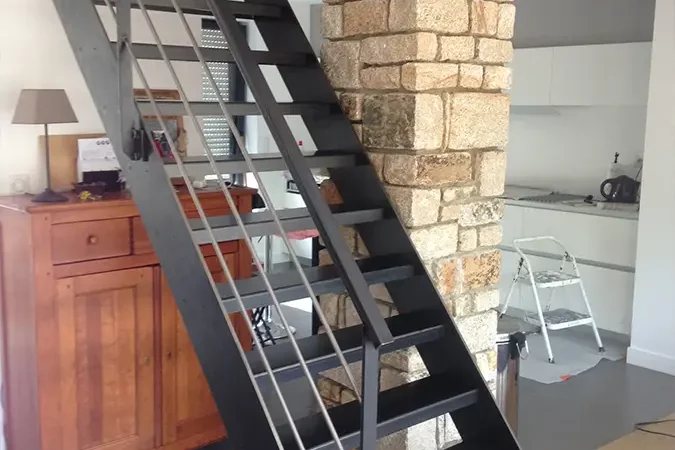 De nombreuses réalisations voient le jour dans notre atelier puis sont posés par nos soins ou sont livrés à d’autres professionnels qualifiés : des escaliers, des rampes d’escaliers, des garde-corps, balustrades, verrières, clôtures, trappe d’accès, portails, portillons, terrasses suspendues, rénovation d’escalier, passerelle, brasero, couvertines, découpe laser, pliage de tôles, différents supports métalliques, des chéneaux, des grilles de sécurité, des barrières, des éléments de décoration intérieurs ou extérieurs pour les particuliers, professionnels et institutions.